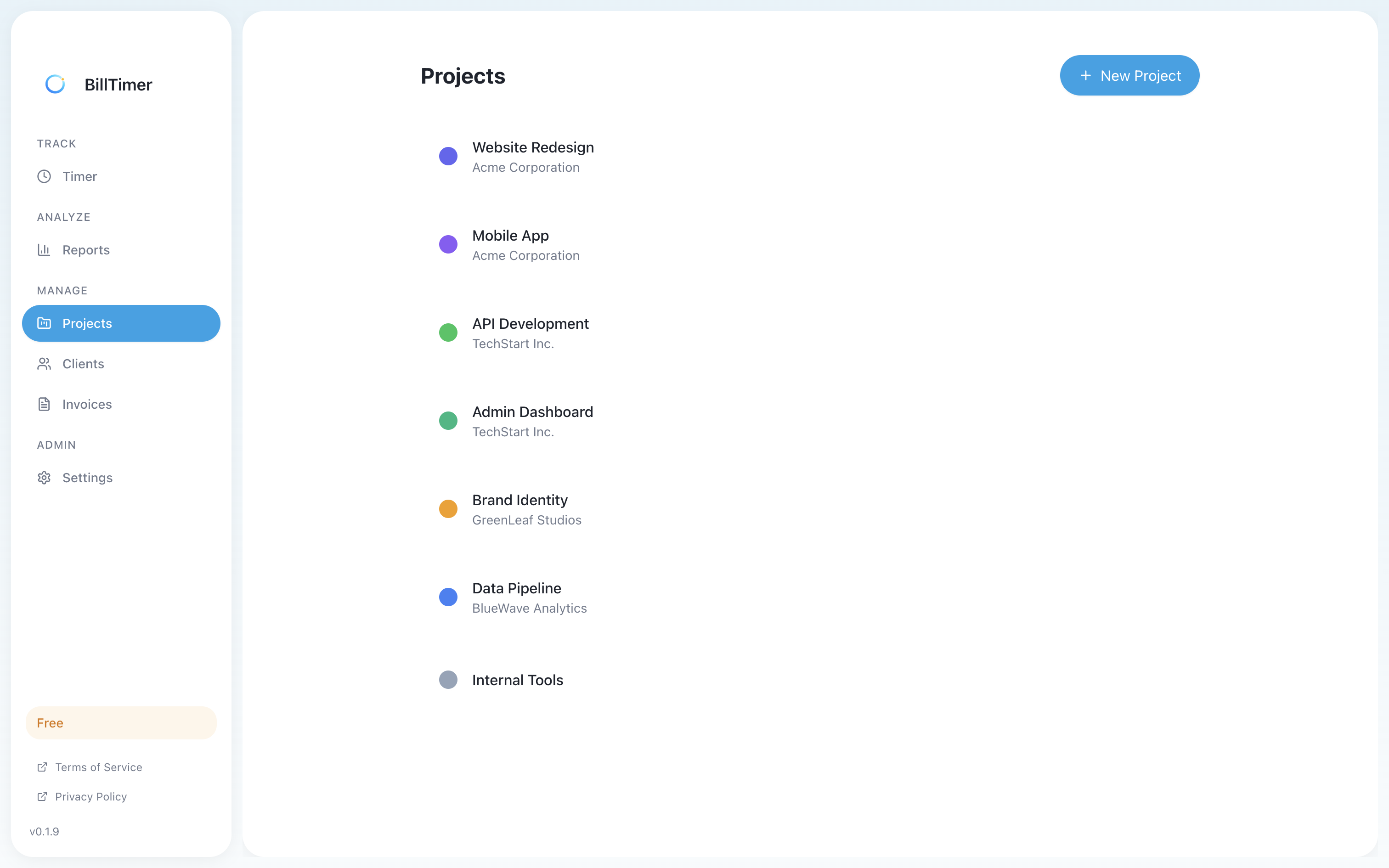 A simple time tracking app for freelancers. Track billable hours, manage clients, and generate professional invoices.