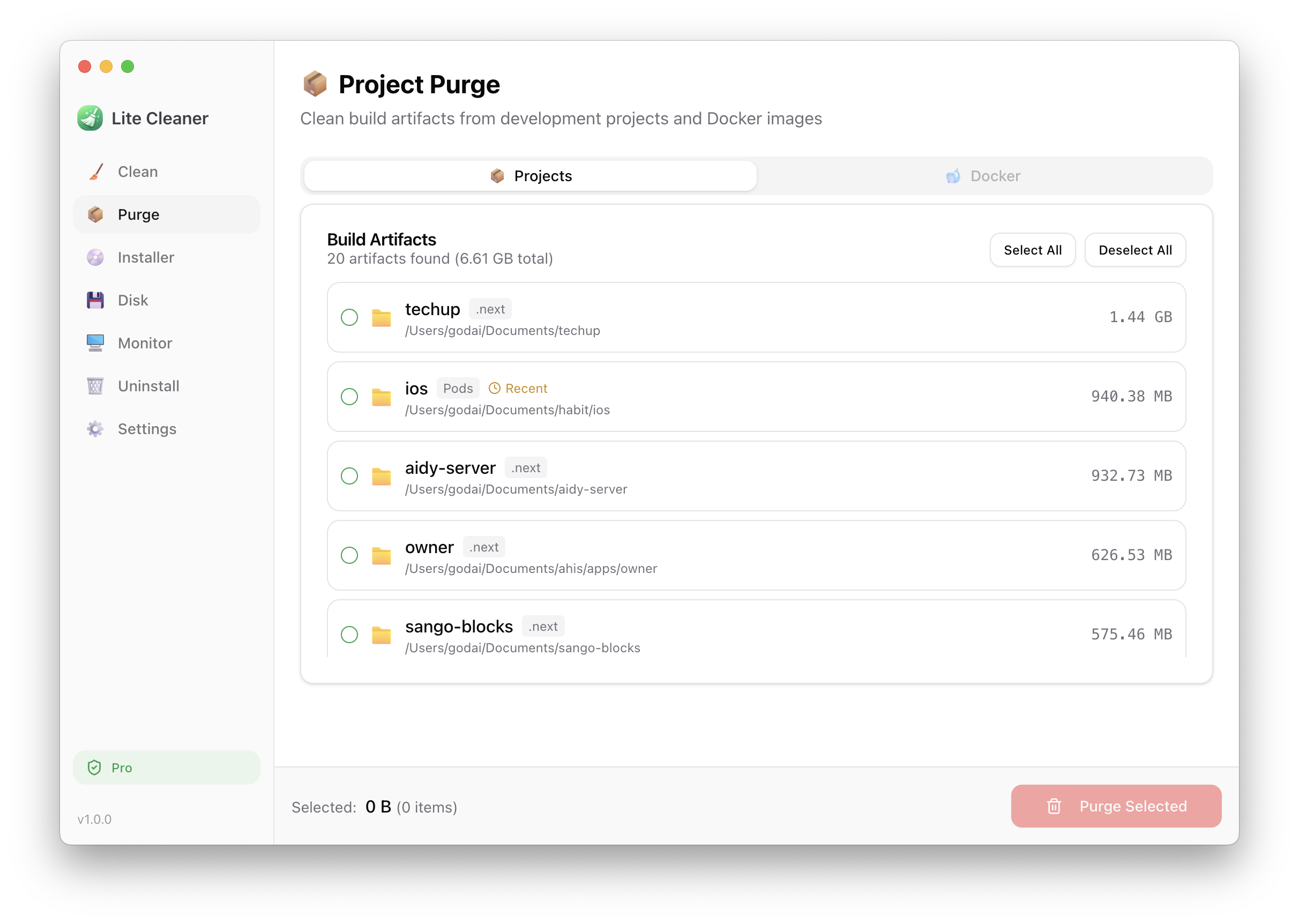 Developers love Lite Cleaner for cleaning up these build artifacts: