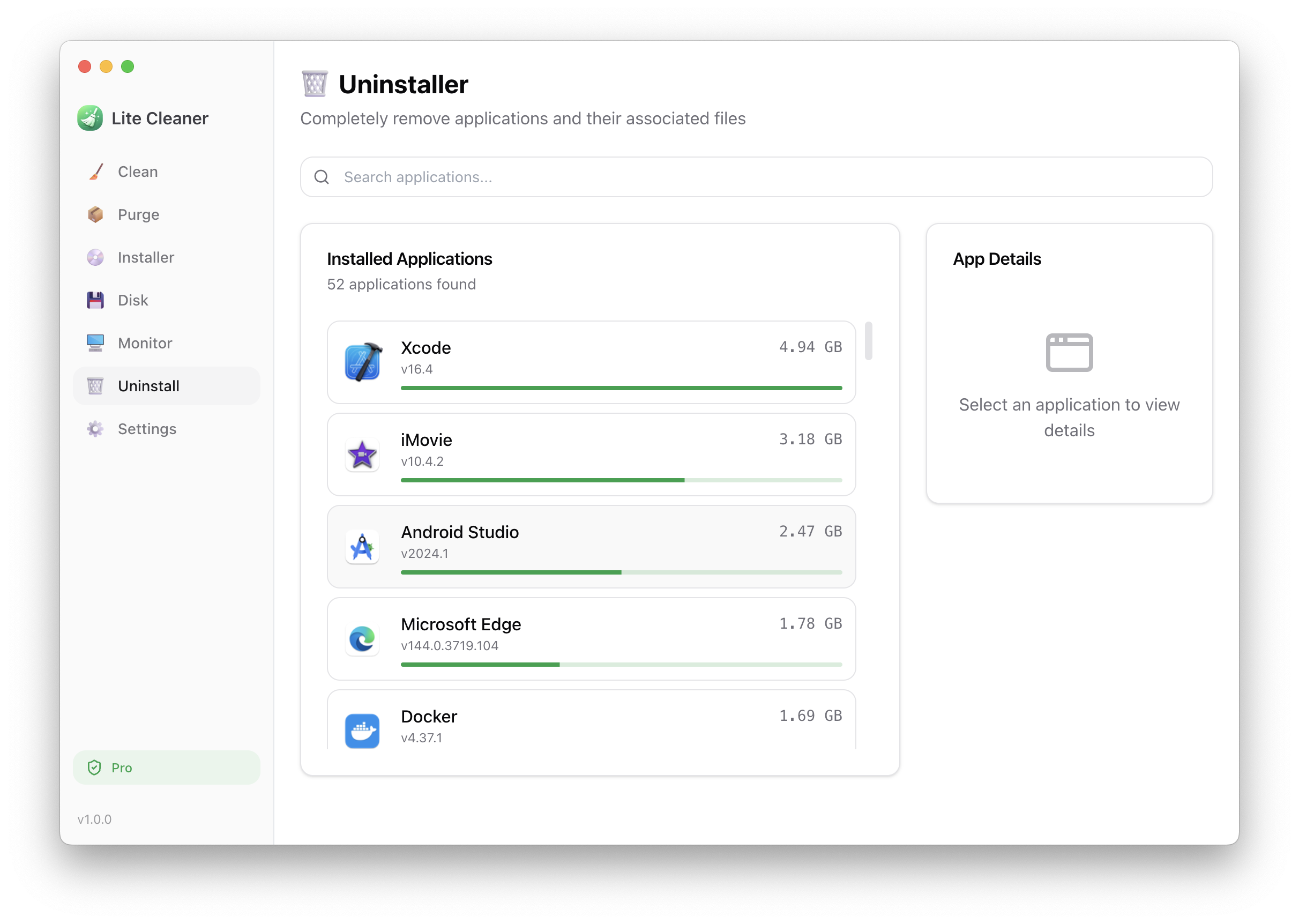 Completely remove apps along with all associated files. Unlike simply moving to Trash, this ensures no leftover files remain.